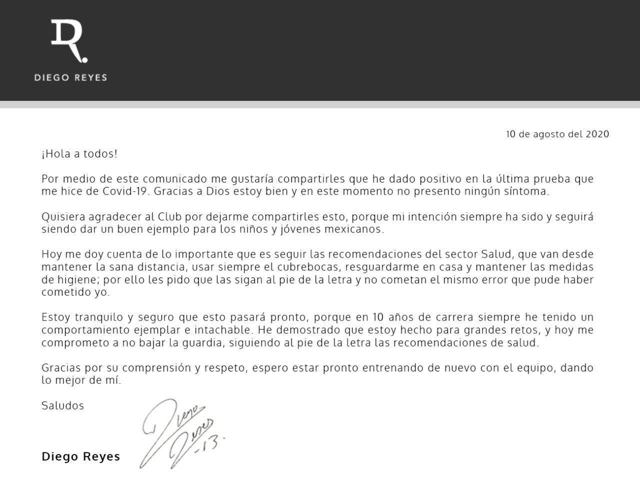 Pues finalmente el haber ido a dejar solo el regalo a su amigo Hugo González parece que tuvo sus consecuencias en Diego Reyes, pues fue el único jugador de Tigres que resultó positivo en la prueba de Covid-19.El Club Tigres dio a conocer este lunes que después de realizar el pasado viernes la prueba al jugador, éste resultó positivo y asintomático, por lo que fue aislado del plantel y se quedará en casa hasta ser sometido a una nueva prueba en los próximos días, pero en el comunicado nunca se mencionó el nombre del jugador.Minutos después fue el propio Diego Reyes es que reveló que él era el jugador contagiado y que estaba bien, sin síntomas y en espera de realizarse nuevas pruebas.Hay que recordar que Diego acudió el sábado 1 de agosto a la casa de Hugo González para dejarle un regalo por su cumpleaños, lugar donde el portero de Rayados tenía una reunión con familiares y amigos. El club espero los días que marca la Organización Mundial de la Salud para que el virus se encube y fue por eso que el viernes se sometió a Reyes a las pruebas, para verificar o descartar el contagio.“Me gustaría compartirles que he dado positivo en la última prueba de Covid-19. Gracias a Dios estoy bien y lo presento ningún síntoma”, publicó el mundialista mexicano en sus redes sociales.“Hoy me doy cuenta de lo importante que es seguir las recomendaciones del Sector Salud , de mantener la sana distancia, usar cubrebocas y resguardarse en casa, por ello les pido que no cometan el mismo error que pude haber cometido yo”.Reyes nunca hizo alusión directa a la reunión en la que estuvo con González, pero está claro que el dejar un regalo a su amigo, le salió demasiado caro.AZ
