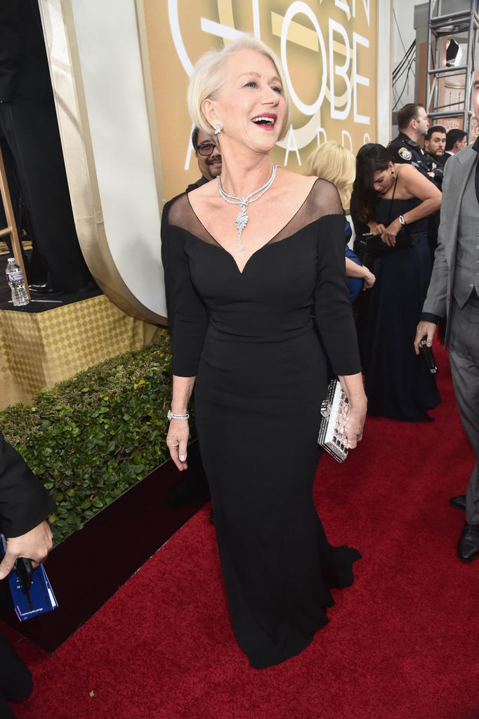Helen MirrenLa veterana actriz vestida de Badgley Mischka estaba nominada a Mejor Actriz de Reparto por Trumbo, pero no se lo llevó.