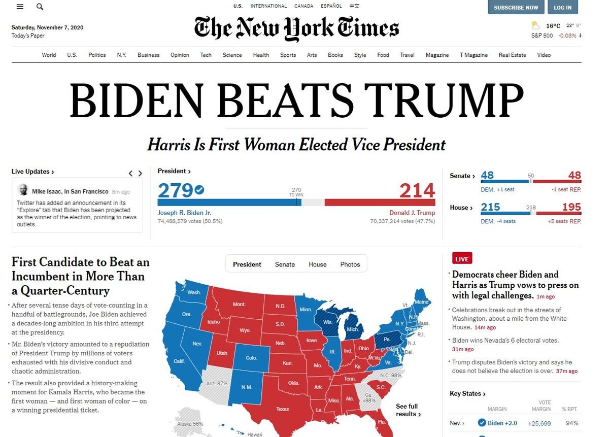 The New York Times - "Biden vence a Trump".