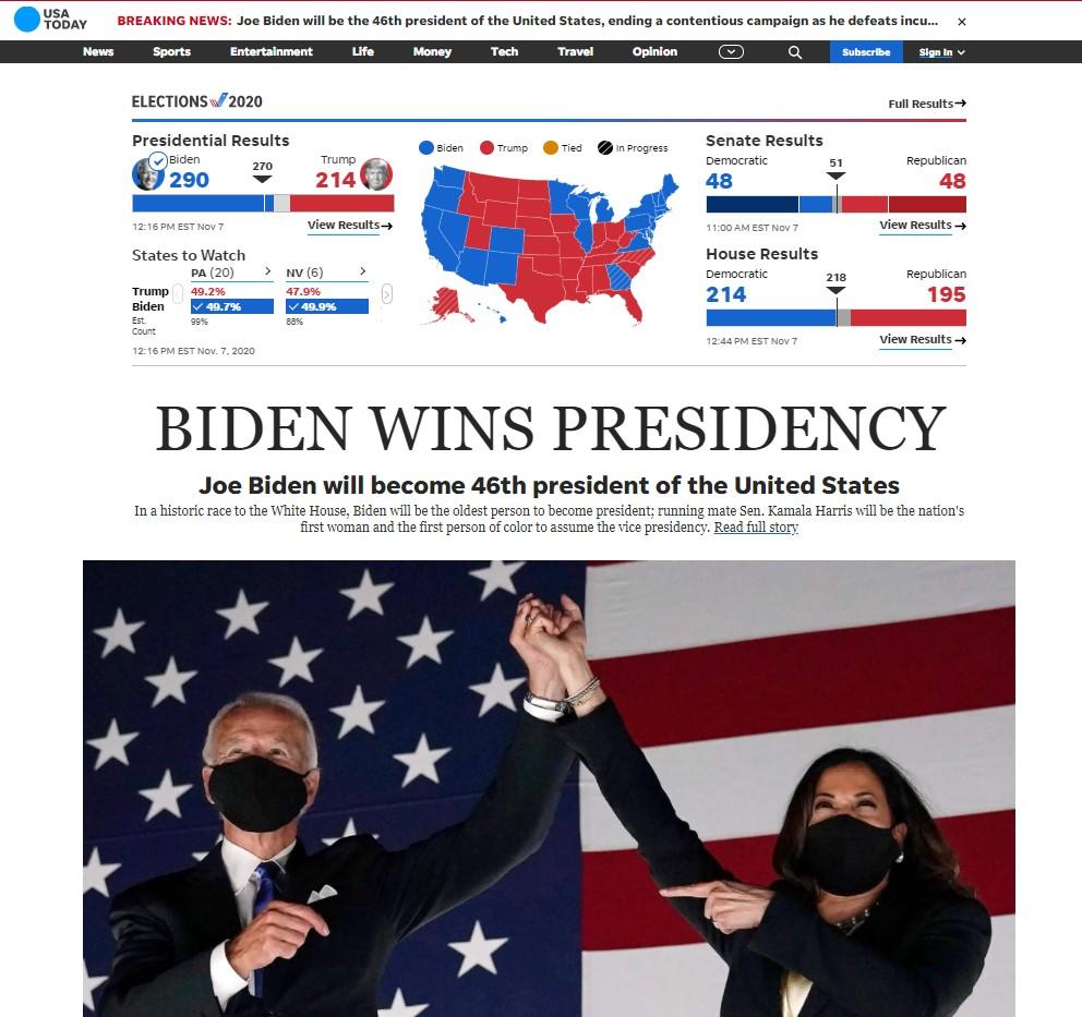 USA Today - "Biden gana la presidencia".