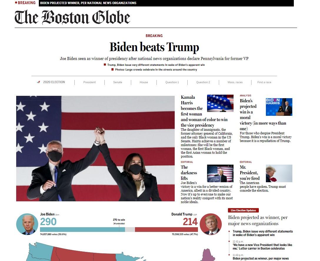 The Boston Globe - "Biden vence a Trump".