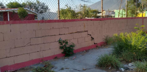 Barda a punto de caer en primaria de la colonia Plutarco Elías Calles de Monterrey