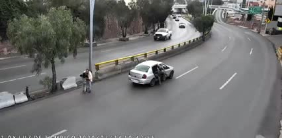 ZACATECAS.- Un niño salió de un vehículo en movimiento y estuvo en riesgo de ser atropellado en el bulevar Adolfo López Mateos, en la capital de Zacatecas. El momento quedó captado en las cámaras de seguridad del lugar.En el video se observa cómo en una curva, la puerta trasera del vehículo se abre y el niño cae al pavimento. Detrás del vehículo se acercan dos camiones pesados, que se percataron del incidente y reducen la velocidad.Tras la caída, el conductor del vehículo en el que iba el menor se detiene más adelante, cuando se da cuenta de lo ocurrido, mientras que el niño se levanta y corre hacia el auto.De acuerdo con las imágenes, en la parte trasera del automóvil también viajaba otro menor.