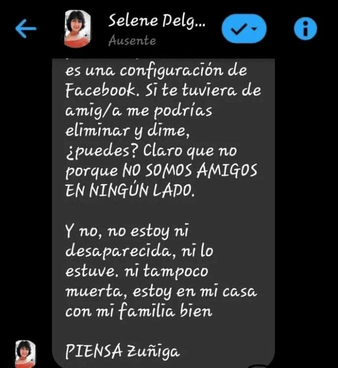 En México y distintas partes de latinoamérica se volvió viral el perfil de Facebook de Selene Delgado López. Usuarios afirman que es amiga de todos en la red social, pero nadie la ha aceptado. Y aunque muchos no la conocen, parece estar asociada a alguna supuesta desaparición que hace años fue presentada a través del Canal 5. Su perfil está configurado solo para mandar mensajes, por lo que no puedes mandarle solicitud de amistad y aparentemente ya la tendrías agregada como amiga. Después de volverse viral, el perfil de mujer fue hostigado con miles de mensajes y comentarios. Ahora, la mujer respondió a la ola de hostigamiento que recibió mediante Facebook.