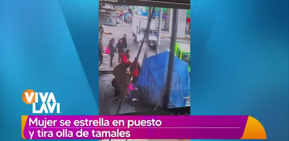 Mujer tropieza y se estrella contra puesto de tamales