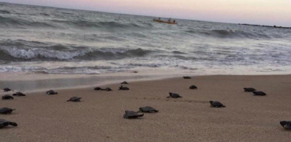 Playa abandonada por cuarentena ve nacer 97 tortugas en peligro de extinción