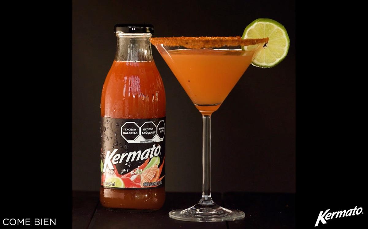 Ingredientes: Hielo 150 ml refresco de toronja 500 ml jugo de piñaPreparación:Comienza escarchando una copa de cristal con limón, sal y chile en polvo. Introduce en un mezclador de bebidas el hielo, el refresco de toronja, jugo de piña y el toque especial de Kermato. Bate por completo el mezclador y sírvelo en la copa. Decora con un pequeño limón y ¡a disfrutar!