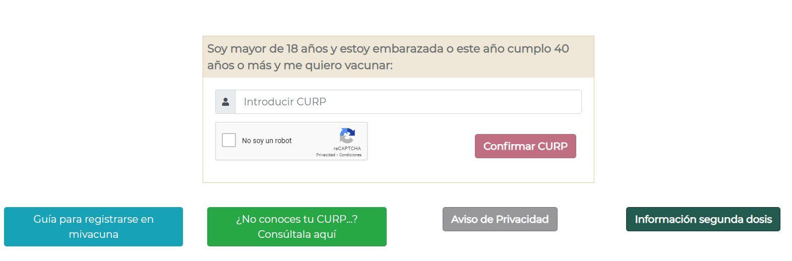 Datos personales que necesitas para el registroCURP, ingresar el estado donde resides, código postal, municipio, dos teléfonos, correo electrónico, correo de apoyo así como un espacio para añadir notas, esto quiere decir, el horario en que las autoridades de salud pueden localizarte.Teniendo esta información a la mano, procede al registro, los pasos se encuentran a continuación.¿Cómo me registro para la vacuna del covid-19?Para iniciar el proceso de registro ingresa a: mivacuna.salud.gob.mx, procura tener a la mano tu CURP, si no lo conoces aquí podrásconsultarlo: CURP. Después, la página desplegará el formulario de datos personales, en el caso de mujeres, pregunta el sistema si estás embarazada, depende de la situación deberás responder. El sistema pide dar clic en el botón "quiero vacunarme", previo a ello, aparece un texto que se recomienda leer sobre el tratamiento de datos personales. Una vez después de dar click, el sistema pide ingresar otros datos del lugar de residencia así como de localización. Una vez confirmados tus datos, el sistema arrojará un folio, es importante que lo guardes, pues facilita la aplicación de la vacuna anticovid en el estado donde residas. Es importante señalar e incluso la página lo indica, este procedimiento no es una cita para la vacunación, una vez registrado, las autoridades sanitarias contactarán los contactarán para indicarles día y hora de la aplicación.