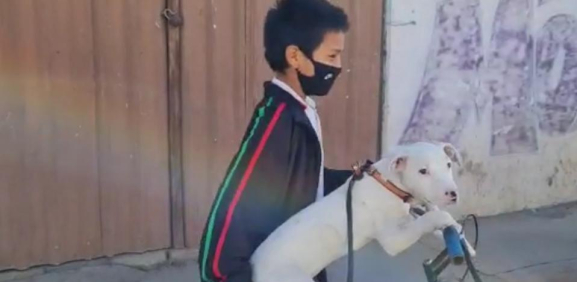 Ángel Ruiz de 12 años, quien es el propietario del perro, refiere que fue hace un año, que comenzó a pasear a su perro a bordo de su bicicleta.